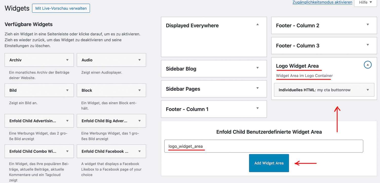 'description' => 'Widget Area im Logo Container',